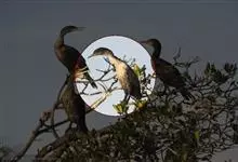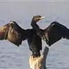 普通鸬鹚是属于鲣鸟目鸬鹚科鸬鹚属鸟类,又名水老鸦、鱼鹰、乌鬼、黑鱼郎等。体长720—900毫米,雌雄同型。通体黑色,有绿褐色金属光泽;喙厚重,喙基和喉囊橙黄色,脸颊及喉白色;夏羽颈及头饰具白色丝状羽,…全部>>