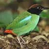 绿胸八色鸫:是雀形目八色鸫科的鸟类,共有12个亚种。体长为16-18厘米,体重65-69克。体型圆胖,尾短,腿长。头黑,上体绿色,两翼深色而具白色斑纹,头顶至后枕深褐,胸及腹部苹果绿,臀亮红。…全部>>