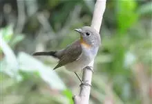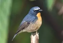 棕胸蓝姬鹟:属小型鸣禽,体长10-13厘米,体重6-10克,是一种体型很小的灰蓝及棕色鹟,雌雄羽色不同,雄鸟羽色艳丽,雌鸟羽色暗淡。雄鸟上体深蓝色,胸橙黄色,下腹灰白色。亚成鸟具褐色斑驳。…全部>>