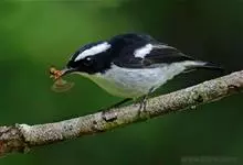 小斑姬鹟体长12厘米,体羽是黑白两色或褐色及白色。栖息于热带、亚热带的潮湿低地森林和山地森林。常单独或成对活动,多在树冠下层低枝处活动和觅食,也常飞到空中捕食飞行性昆虫,捉到昆虫后又落于较高的枝头上。…全部>>