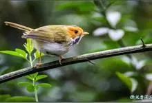 棕脸鹟莺:体长10厘米,是一种色彩亮丽而有特色的莺鸟。头栗色,具黑色侧冠纹。上体绿,腰黄色。下体白,颏及喉杂黑色点斑,上胸沾黄。与栗头鹟莺的区别在头侧栗色,白色眼圈不显著且无翼斑。…全部>>