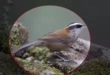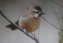 白颊噪鹛是雀形目噪鹛科噪鹛属鸟类,又称土画眉、小画眉、小噪鹃。成鸟额至头顶栗褐色,长眉纹、眼先和颊纹棕白色,眼后至耳羽深褐色,…全部>>