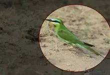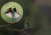 蓝颊蜂虎:是蜂虎科、蜂虎属的鸟类,共有2个亚种。体长27-33厘米,翼展46-49厘米,体重38-50克。嘴形细长而下弯,先端尖,…全部>>