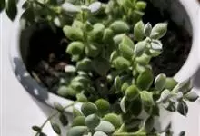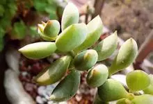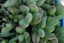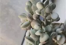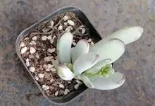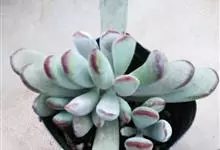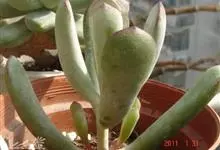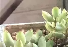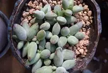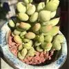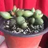 乒乓福娘,植株叶片退化成扁卵状,植株为直立的肉质灌木,能够长高。叶片对生,扁卵型至圆卵形,叶片顶端紫红圆叶尖,叶面有一层白粉。强光下叶片的顶端边缘会较红。初夏开花,聚伞状圆锥花序,花序较高,小花管状…全部>>