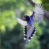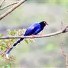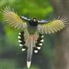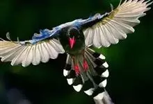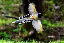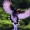 台湾蓝鹊:体长64至65厘米,翼展18至21厘米,尾长约40厘米,尾羽长占了总体长的三分之二。头、脸、颈、喉、胸都是黑色,黄色的眼珠包围黑色的瞳孔,鲜红色的鸟喙、双脚,…全部>>