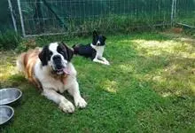 圣伯纳犬,别名巴里汉德,属于大型工作犬,肩高约65~90厘米,体重约50~90千克。圣伯纳犬身体强壮,被毛红褐色和白色相间,头圆而宽大。颈部强壮,胸宽深,背直。前肢长直,腕关节略前倾,后肢腿骨粗壮,…全部>>