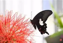 玉斑凤蝶Papilio helenus 别名白纹凤蝶,是凤蝶科凤蝶属美凤蝶亚属大型种类。雌雄同型;体翅皆黑色,后翅正面中室外有3个并列的白色斑,亚外缘有1列模糊的新月形红色斑,…全部>>