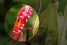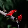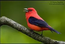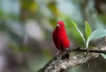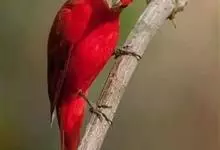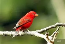 血雀雀科朱雀属鸟类,体重36-49克;体长155-182毫米。雄鸟除眼先、翼与尾为黑色外,通体为鲜红色;嘴鲜黄;雌鸟暗橄榄绿色,羽端较淡或带黄色;腰鲜黄;嘴较暗。虹膜褐色;嘴黄色;腿和脚褐色。…全部>>