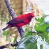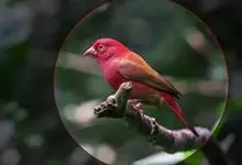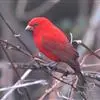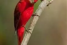 血雀雀科朱雀属鸟类,体重36-49克;体长155-182毫米。雄鸟除眼先、翼与尾为黑色外,通体为鲜红色;嘴鲜黄;雌鸟暗橄榄绿色,羽端较淡或带黄色;腰鲜黄;嘴较暗。虹膜褐色;嘴黄色;腿和脚褐色。…全部>>
