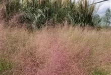 粉黛乱子草:是禾本目、禾本科、乱子草属植物。多年生暖季型草本,株高可达30-90厘米,宽可达60-90厘米。顶端呈拱形,绿色叶片纤细。顶生云雾状粉色花絮,花期9-11月,…全部>>