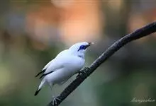 长冠八哥:是一种大型椋鸟,体长约25厘米,雌雄相似,外形俊朗,羽冠发达,眼睛四周和面部裸出,裸露部分为蓝色,全身羽毛纯白色,尾部和翼端的边缘呈黑色,脚灰色。全身白色,具较长冠羽,…全部>>