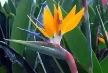 鹤望兰,别名天堂鸟,为鹤望兰科鹤望兰属的一种多年生草本植物;无木质树干;花序生于与叶柄近等长或稍短的花序梗上,佛焰苞1;花较小,萼片橙黄色,长7.5-10厘米,箭头状花瓣基部具耳状裂片,…全部>>