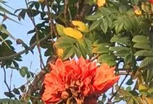 火焰木,又名苞萼木、喷泉树,为紫葳科常绿大乔木,株高10—20米,叶为奇数羽状复叶,对生,较大,斜椭圆形,全缘,纸质,叶面深绿色。 全部>>
