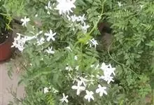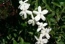 素馨花,木犀科素馨属多年生的攀援灌木植物。攀援灌木,小枝圆柱形,具棱或沟;叶对生,叶轴常具窄翼,小叶片卵形或长卵形;聚伞花序顶生或腋生,花序梗长,苞片线形,花萼无毛,裂片锥状线形,花冠白色,…全部>>