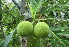 面包树 Fosberg)是桑科波罗蜜属植物。叶大,成熟之叶羽状分裂,表面深绿色,背面浅绿色;穗状花序单生叶腋,雄花序长圆筒形至长椭圆形或棒状;聚花果倒卵圆形或近球形;花期为3~5月,果期为7~10月。…全部>>