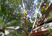 菠萝蜜是桑科波罗蜜属常绿乔木。老树常有板状根;叶革质,螺旋状排列,椭圆形或倒卵形;花雌雄同株,花序生于老茎或短枝上;果椭圆形至球形,成熟时黄褐色,核果长椭圆形;花期3-8月,果期6-11月。…全部>>