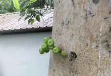 大果榕是桑科榕属的小乔木,株高可达10米;幼枝被柔毛;叶互生,宽卵状心形或近圆形;雄花无梗、匙形、花丝长,雌花生于雌株榕果内,子房白色;榕果簇生于树干基部或老茎短枝上、扁球形或陀螺形,…全部>>