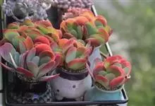唐印为景天科伽蓝菜属的多年生肉质草本植物。植株中型,株高50厘米,宽20厘米,多分枝;叶片肉质,对生,卵形,全缘,先端钝圆,叶片淡绿色至灰绿色,表面被有厚厚的白粉,光照充足时,叶缘呈红色;圆锥花序,…全部>>
