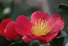 滇山茶:灌木至小乔木,有时高达15米,嫩枝无毛。叶阔椭圆形,上面干后深绿色,发亮,下面深褐色,无毛,侧脉6-7对,边缘有细锯齿。花顶生,红色,直径10厘米,无柄;苞片及萼片10-11片,花瓣红色,…全部>>