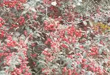 火棘 H. L. Li)是蔷薇科火棘属常绿灌木,老枝呈暗褐色;叶片呈倒卵形,边缘有钝锯齿,齿尖向内弯,两面皆无毛;叶柄短,无毛或嫩时有柔毛;花序是复伞房状,花瓣呈白色近圆形;果球近圆形,…全部>>