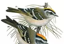 戴菊小型鸟类,体长9~10厘米。上体橄榄绿色。头顶中央柠檬黄色或橙黄色羽冠,两侧有明显的黑色侧冠纹,眼周灰白色。腰和尾上覆羽黄绿色,两翅和尾黑褐色,尾外翈羽缘橄榄黄绿色,初级和次级飞羽羽缘淡黄绿色,…全部>>