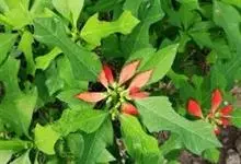 猩猩草:常绿或半常绿灌木,盆栽时株高0.5米-2米,在亚热带地区可长到6米以上。茎直立而光滑,单叶互生,卵状椭圆形至阔披针形,具不规则的深缺刻。长10-15厘米。花小,有蜜腺,排列成密集的伞房花序。…全部>>