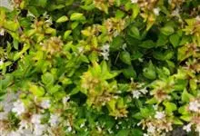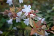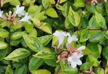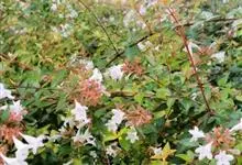 大花六道木,忍冬科六道木属半常绿矮生灌木。其幼枝为红褐色,有短柔毛;叶片倒卵形为墨绿色,有光泽;花粉钟形为白色;圆锥花序,开花繁茂;花期长,5~11月持续开花。…全部>>