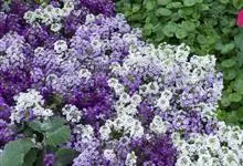 香雪球 Desv.),十字花科香雪球属草本植物,高15-30厘米。植株矮小,分枝较多;茎自基部向上分枝;叶披针形或条形;花序伞房状,花小有微香,花瓣淡紫色或白色;果短椭圆形无毛或少毛;花期温室3-4月,…全部>>