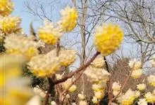 结香是瑞香科结香属落叶灌木。又名岩泽兰、三桠皮、三叉树、蒙花、山棉皮等。高约0.7-1.5米,小枝粗壮,褐色,常作三叉分枝,幼枝常被短柔毛;叶在花前凋落,长圆形,披针形至倒披针形,先端短尖,…全部>>