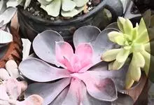 紫珍珠是景天科石莲花属的多年生肉质草本植物。植株中小型;叶片肉质,匙形,呈莲座状紧密排列;叶片粉紫色,叶缘呈粉白色,光照充足时颜色亮丽,不足时叶色会呈现深绿色或灰绿色,叶面光滑,被轻微白粉,…全部>>