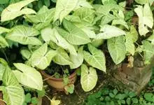 合果芋是天南星科,合果芋属多年生常绿草本植物,合果芋的茎节具气生根,攀附他物生长。叶片呈两型性,箭形或戟形;叶基裂片两侧常着生小型耳状叶片。佛焰苞浅绿或黄色。合果芋一般不易开花。…全部>>