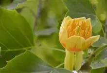 鹅掌楸 Sarg.),别名马褂木、宝剑木、九层皮,为木兰科鹅掌楸属落叶大乔木。小枝灰色或灰褐色;叶马褂状,叶柄长4-8cm;花杯状,浅黄色;果实为聚合果,顶端钝或钝尖;花期5月,果期9~10月。…全部>>
