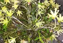 束花石斛是兰科石斛属植物。茎粗厚,肉质,下垂或弯垂,圆柱形,不分枝,具多节。叶二列,互生于整个茎上,纸质,长圆状披针形。伞状花序近无花序柄,每2-6花为一束,侧生于具叶的茎上部;花黄色,…全部>>
