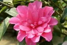滇山茶:灌木至小乔木,有时高达15米,嫩枝无毛。叶阔椭圆形,上面干后深绿色,发亮,下面深褐色,无毛,侧脉6-7对,边缘有细锯齿。花顶生,红色,直径10厘米,无柄;苞片及萼片10-11片,花瓣红色,…全部>>