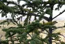 冷杉Craib)常绿乔木,树干端直,枝条轮生。树皮灰色或深灰色,裂成不规则的薄片固着于树干上,内皮淡红色;大枝斜上伸展,一年生枝淡褐黄色、淡灰黄色或淡褐色,叶枕之间的凹槽内有疏生短毛或无毛,…全部>>