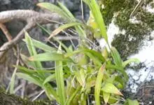 云南石仙桃:根状茎匍匐、分枝,粗4-6毫米,密被箨状鞘,通常相距1-3厘米生假鳞茎;假鳞茎近圆柱状,向顶端略收狭顶端生2叶。叶披针形,坚纸质。花葶生于幼嫩假鳞茎顶端,连同幼叶从靠近老假鳞茎基部的根状…全部>>