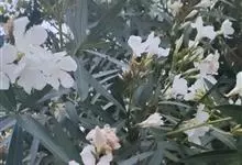 白花夹竹桃是夹竹桃科、夹竹桃属植物夹竹桃的栽培品种。常绿直立大灌木,枝条灰绿色;嫩枝条具稜,被微毛,老时毛脱落。叶3-4枚轮生,下枝为对生,叶面深绿,叶背浅绿色;侧脉纤细平行与中脉成直角;叶柄扁平,…全部>>