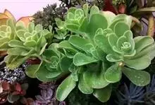 红缘莲花掌属蔷薇目、景天科植物,原产大西洋的加那利群岛。质厚,蓝绿色,被白霜,叶缘红褐色。聚伞花序,花浅黄色,有时带红晕。叶形叶色较美,有一定的观赏价值,多盆栽用于点缀室内;可放置于电视、电脑旁,…全部>>