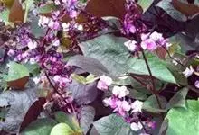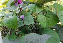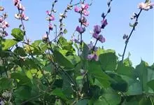 扁豆 Sweet)是豆科扁豆属多年生缠绕藤本植物,又名鹊豆、沿篱豆、藤豆等。全株几无毛,茎长可达6米。羽状复叶具3小叶;托叶基着,叶片披针形;小托叶线形,小叶宽三角状卵形,宽与长相等,…全部>>