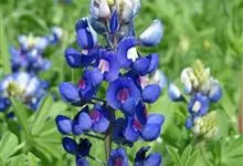 多叶羽扇豆一年生草本,高可达100厘米。茎直立,掌状复叶,小叶披针型至倒披针型,叶质厚,总状花序,花多而稠密,互生,花序轴纤细,花梗甚短,萼二唇形,被硬毛,花冠蓝色,旗瓣和龙骨瓣具白色斑纹。…全部>>