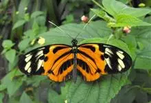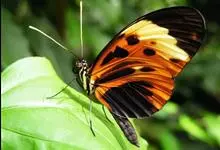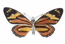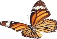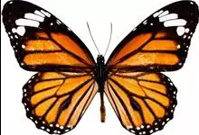 黑脉金斑蝶:翅阔8.6-12.4厘米。雄蝶较雌蝶为大。成年蝶颜色鲜艳,翅膀上有显眼的橙色及黑色斑纹,周围是宽阔的黑色边框,布有许多白色斑点。这种引人注目的着色是对捕食者的视觉警告,表示这个物种有毒;…全部>>