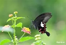 玉斑凤蝶Papilio helenus 别名白纹凤蝶,是凤蝶科凤蝶属美凤蝶亚属大型种类。雌雄同型;体翅皆黑色,后翅正面中室外有3个并列的白色斑,亚外缘有1列模糊的新月形红色斑,…全部>>
