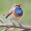 蓝点颏亦称“蓝喉歌鸲”,通称蓝靛颏儿。身体大小和麻雀相似,体长12-13厘米,体重17-18克。头部、上体主要为土褐色。眉纹白色。尾羽黑褐色,基部栗红色。颏部、喉部辉蓝色,下面有黑色横纹。下体白色。…全部>>