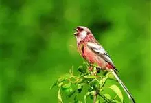 长尾朱雀:体长18厘米,体重16-26克。雄鸟额、颏和眼后为暗红色,头顶与后颈的羽端较淡;翼羽具宽阔的白色边缘与先端;形成鲜明的翼斑;外侧尾羽白色,嘴短粗呈膨胀状;雌鸟无红色,头、颊到翕带灰色,…全部>>