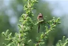 栗斑腹鹀:属小型鸣禽。体重19-25克,体长145-167毫米。头顶至背栗红色,眼先和颧纹黑褐色,黑色颧纹上还有一白纹,耳羽褐色或灰褐色,眉纹白色或灰白色。背、肩具黑色纵纹,腰至尾上覆羽砖红色无纵纹,…全部>>