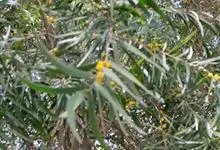 大叶相思是豆科,相思树属常绿乔木,枝条下垂,树皮平滑,灰白色;叶片镰状长圆形,两端渐狭,穗状花序,簇生于叶腋或枝顶;花橙黄色;花萼顶端浅齿裂;花瓣长圆形,荚果成熟时旋卷,果瓣木质,种子黑色,…全部>>