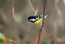 黄腹山雀是雀形目山雀科山雀属鸟类。虹膜褐色或暗褐色;嘴蓝黑色或灰蓝黑色;头、喉胸斑黑色,颊斑、颈后斑白色;上体蓝灰色,腰银白色;翼具两排白色点斑;下胸、腹鲜黄色;尾黑色,…全部>>