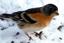 燕雀属小型鸟类,体长14-17厘米。嘴粗壮而尖,呈圆锥状。雄鸟从头至背辉黑色,背具黄褐色羽缘。腰白色,颏、喉、胸橙黄色,腹至尾下覆羽白色,两胁淡棕色而具黑色斑点。两翅和尾黑色,翅上具白斑。…全部>>