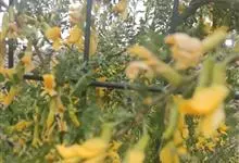 柠条锦鸡儿是豆科锦鸡儿属植物,灌木,有时小乔状,高1-4米;老枝金黄色,有光泽;嫩枝被白色柔毛。羽状复叶有6-8对小叶;托叶宿存;叶轴脱落;小叶披针形或狭长圆形,先端锐尖或稍钝,有刺尖,灰绿色。花梗…全部>>