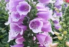 毛地黄是车前科、毛地黄属一年生或多年生草本植物。株高0.5—1米,茎直立,少分枝,全株被灰白色短柔毛和腺毛叶基生,呈莲座状,卵圆形或卵状披针形。顶生总状花序,花冠钟状,紫红色,内面有浅白斑点。菊果卵形。…全部>>